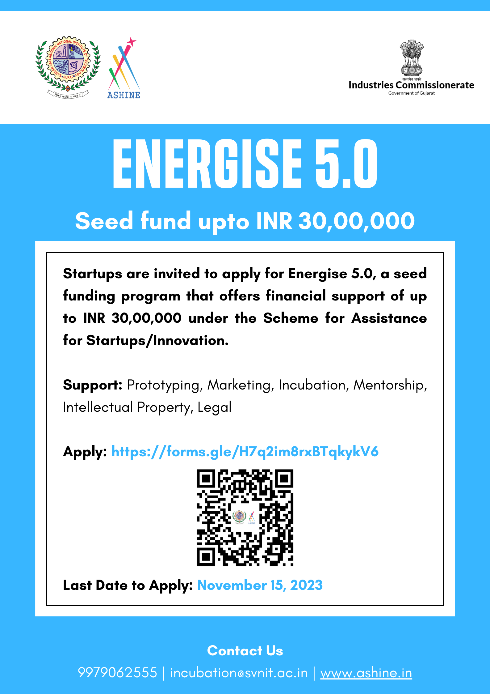 - Event: Applications are open for Startups for the Energise 5.0, a seed funding program providing funds up to INR 30,00,000 under the Scheme for Assistance for Startups/Innovations.