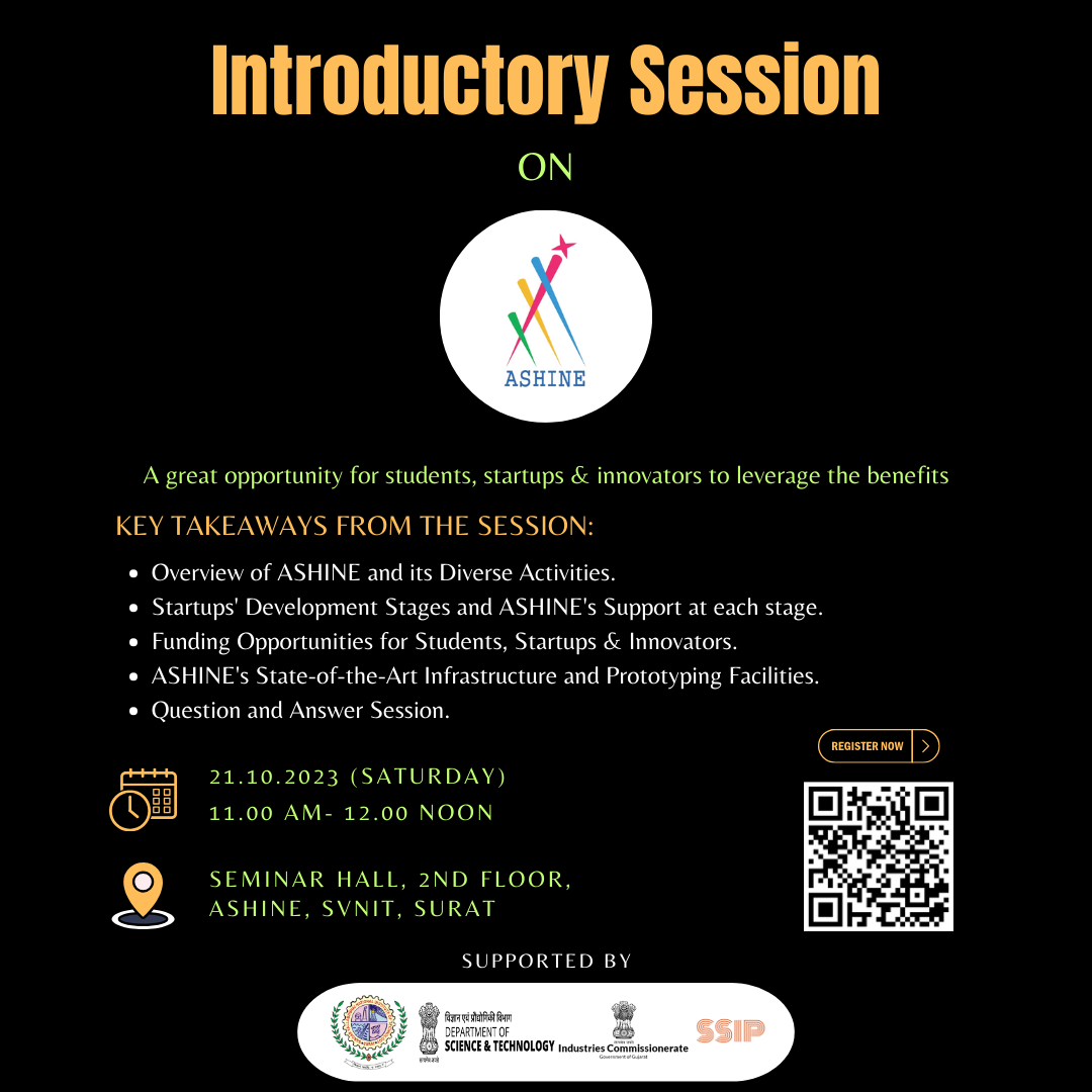 Venue: Seminar Hall, 2nd Floor, ASHINE, SVNIT Campus